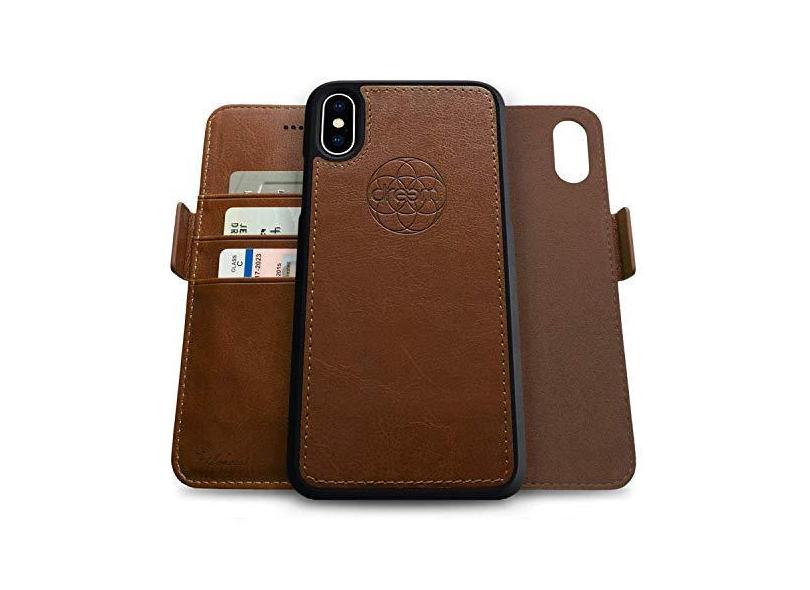 Dreem Capa carteira 2 em 1 Fibonacci para Apple iPhone Xs Max - couro vegano luxuoso, capa de telefone magnética destacável à prova de choque, proteção de cartão RFID, suporte flip bidirecional -