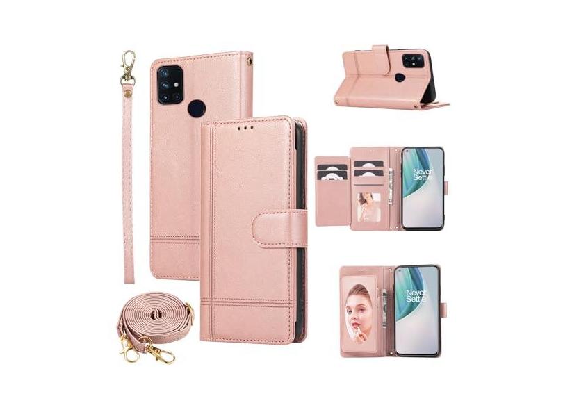 Dswteny Compatível com OnePlus Nord N10 5G capa carteira alça de pulso, alça transversal, capa de celular com suporte flip de couro espelhado para One Plus N 10 G5 1 Plus 10N 1plus One+ 1+ N105G