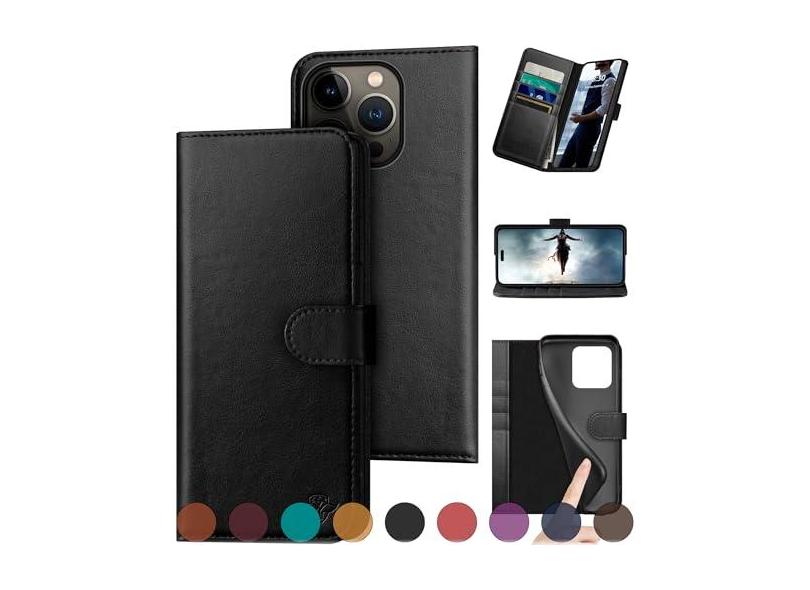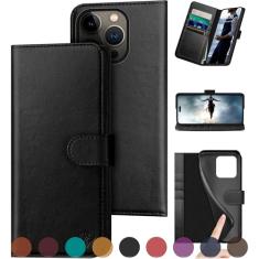 DuckSky Capa carteira de couro genuíno compatível com iPhone 16 Pro de 6,3 polegadas 【Bloqueio RFID】【Suporte de 4 cartões de crédito】【Couro verdadeiro】Capa protetora flip folio book capa protetora