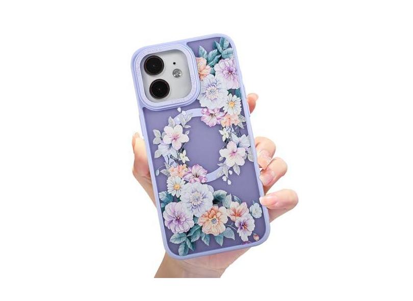 Eiyikof Capa magnética fosca translúcida compatível com iPhone 11 [capa MagSafe luxuosa à prova de choque] [capa traseira rígida com estampa de flor fofa] Capa para iPhone 11 para mulheres e meninas -