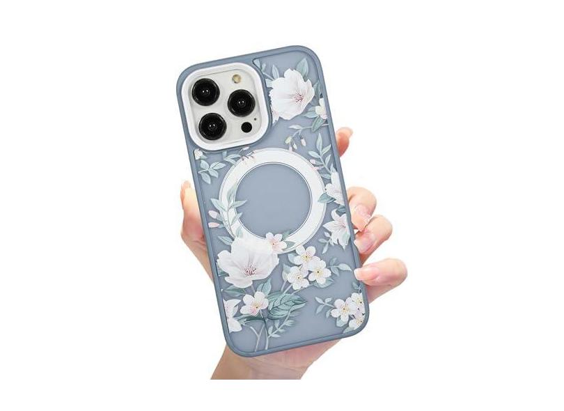 Eiyikof Capa magnética fosca translúcida compatível com iPhone 15 Pro Max [capa MagSafe luxuosa à prova de choque] [capa traseira rígida com estampa de flores fofas] Capa para iPhone 15 Pro Max para
