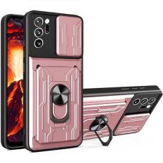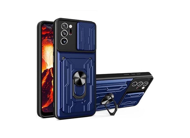 Ephoou Capa protetora para Samsung Galaxy Note 20 Ultra com capa de lente de câmera deslizante e suporte de anel, [Suporte de cartão removível] Capa à prova de choque de grau militar para Samsung