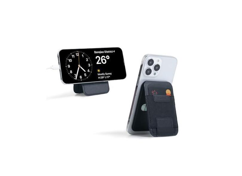 ergomi Hera Carteira com dobradiça magnética, compatível com dispositivos MagSafe, carteira para celular com suporte ajustável, para iPhone 15/14/13/12 Series, vários porta-cartões, couro vegano,