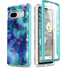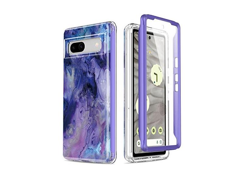 Esdot Capa para Google Pixel 7A com protetor de tela integrado, capa robusta de grau militar com designs bonitos da moda para mulheres e meninas, capa protetora para celular novo Pixel 7A roxo opala mármore