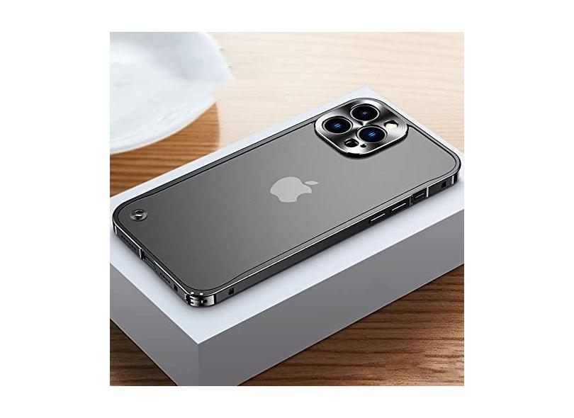 O menor preço encontrado no Brasil para Estojo de armação de metal galvanizado de luxo para iPhone 11 12 13 14 Pro Max 12 13 Mini 14Plus Capas de telefone com placa traseira de acrílico fosco, preto 1, para iPhone 12Pro atualmente é R$ 185,88.