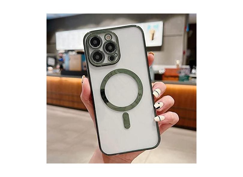 Estojo de carga magnética sem fio transparente de revestimento de luxo para iPhone 11 13 12 14 Pro XS Max X XR 8 Plus Capa de silicone macio, verde escuro, para iPhone 14 Plus