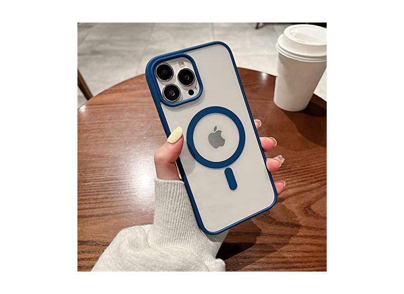 O menor preço encontrado no Brasil para Estojo de carga magnética sem fio transparente para iPhone 14 13 11 12 Pro Max X XR XS Silicone Bumper Clear Hard PC Cover, azul marinho, para iPhone 14 atualmente é R$ 115,78.