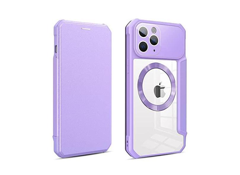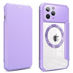 Estojo de carregamento sem fio para iPhone 14 13 12 11 Pro Max XS X XR Plus capa magnética flip couro shell slot para cartão, roxo, para iPhone 12