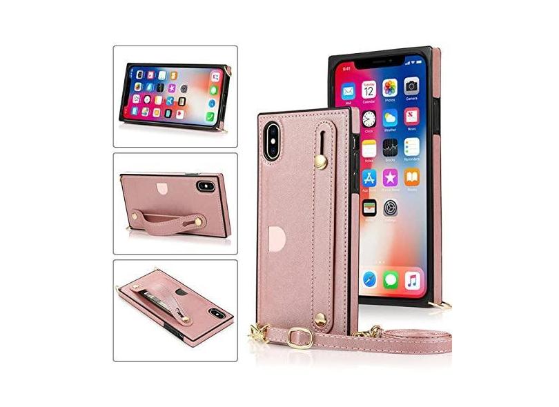 Estojo de couro com alça de pulso transversal para iPhone XR X XS Max 14 1312 11 Pro Max com capa de carteira para iPhone 6 7 8 Plus Phone, ouro rosa, para iphone 6 6S