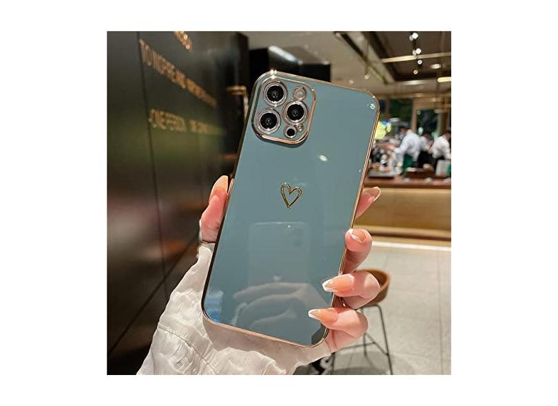 Estojo macio à prova de choque para celular Plating Love Heart para iPhone 14 13 12 11 Pro Max X XR XS 7 8 Plus SE 3 Lens Camera Protective Cover, grey, For iPhone 12