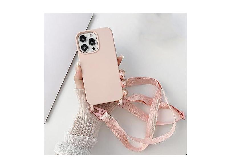 Estojo macio de silicone líquido para cordão transversal de luxo para iPhone 13 12 Mini 11 Pro XR X XS Max 7 8 plus SE 2020 Capa para alça de ombro, rosa, para iPhone XS
