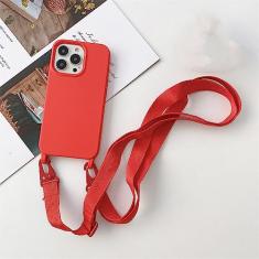 Estojo macio de silicone líquido para cordão transversal de luxo para iPhone 13 12 Mini 11 Pro XR X XS Max 7 8 plus SE 2020 Capa para alça de ombro, vermelho, para iPhone 12 Mini