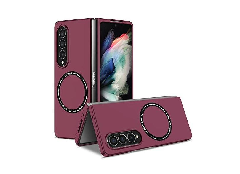 Estojo magnético de carregamento sem fio para Samsung Galaxy Z Fold 3 4 estojos à prova de choque e anti-impressão digital, Claret, para Galaxy Z Fold 3