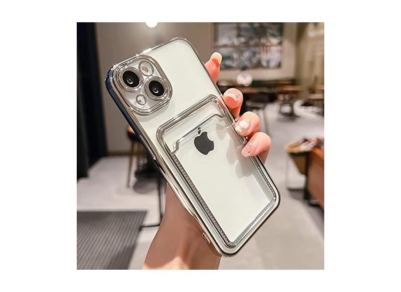 Estojo porta-cartões transparente galvanizado para iPhone 13 11 12 14 Pro Max 14 Plus Bolso para fotos Capa de silicone à prova de choque, prata, para iphone 11 Pro