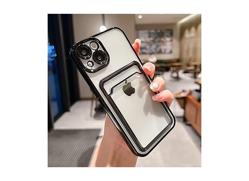 Estojo porta-cartões transparente galvanizado para iPhone 13 11 12 14 Pro Max 14 Plus Bolso para fotos Capa de silicone à prova de choque, preto, para iPhone X ou XS