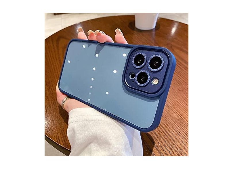 Estojo transparente de proteção de lente de câmera de metal com brilho de luxo para iPhone 11 12 13 14 Pro Max Plus Capa de silicone à prova de choque à prova de choque, azul marinho, para iPhone 13 ProMax