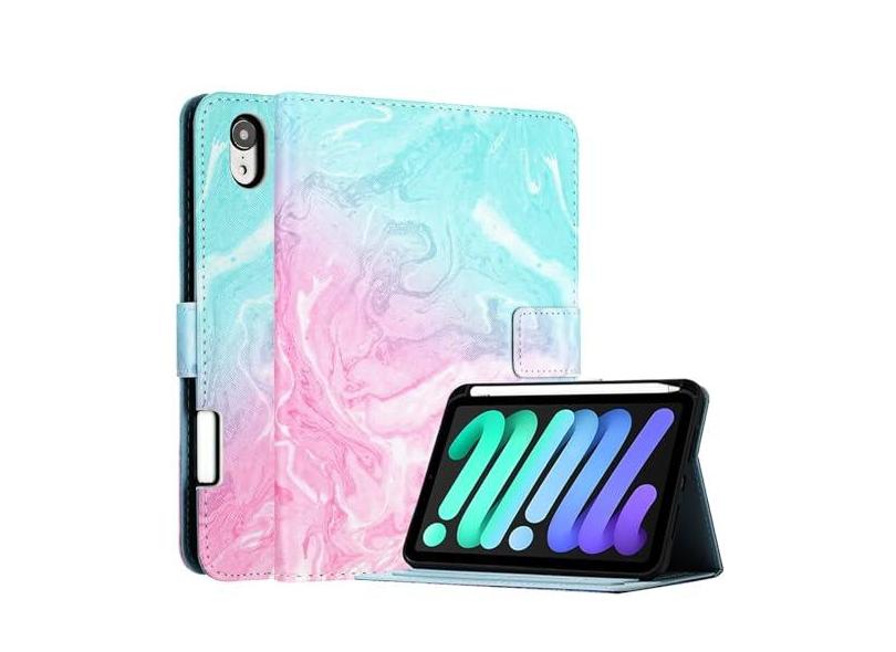 Fancity Capa para iPad Mini 6 modelo 2021 de 8,3 polegadas, capa de couro PU Smart Wake Sleep com suporte para caneta, capa protetora flip com slot para cartão fecho magnético para iPad Mini 6ª