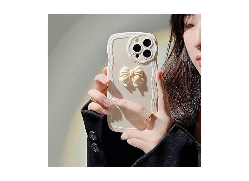 Fashion Wave Frame 3D Bow Silicone Soft Ring Shell para iphone 14 11 12 13 Pro Max Xr 7 8 Plus SE2 Phone Case, White2, For iPhone 13