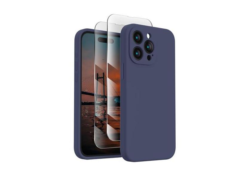 FireNova Capa projetada para iPhone 15 Pro Max, capa de telefone de silicone atualizada [proteção da câmera] com [2 protetores de tela], forro de microfibra macio antiarranhões dentro, 17 cm, azul