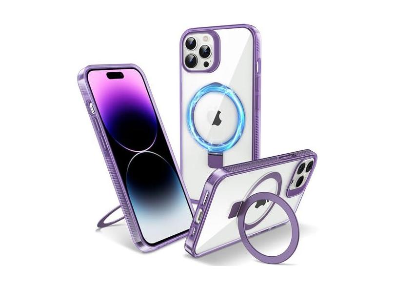Flyzoo Capa magnética para iPhone 14 Pro - [suporte invisível embutido] [compatível com MagSafe] [proteção contra quedas de grau militar] capa de borda de silicone rígida antiamarelamento, 15,5 cm,