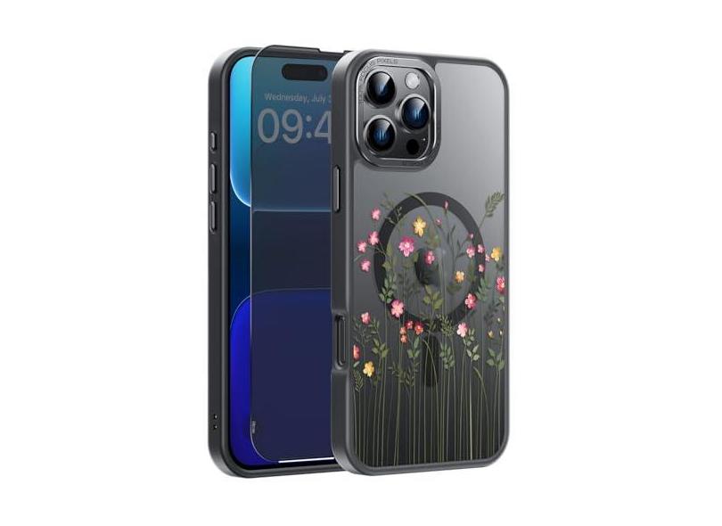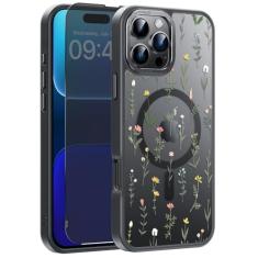 FUNMIKO Capa para 16 Pro Max com protetor de tela de privacidade, compatível com carregamento sem fio, capa fosca translúcida - linda capa de telefone com design floral para mulheres e meninas -