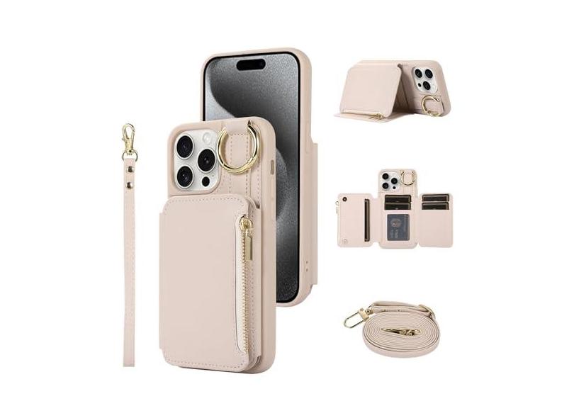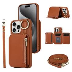 Furiet Capa carteira para 15 Pro 15.5 cm couro fecho flip zíper bolsa bolsa com alça de ombro suporte para cartão de crédito acessórios celular capa para iPhone 15Pro 5G i i-Phone i15 iPhone15 15Pro