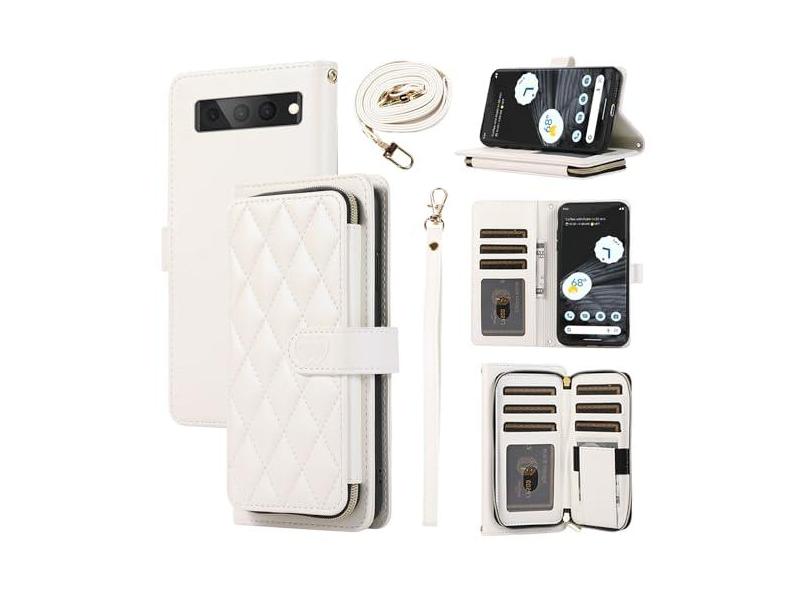 Furiet Capa carteira para Google Pixel 7 Pro 5G com alça de pulso, alça de ombro transversal, capa de celular com suporte de couro PU de luxo com mais de 9 compartimentos para cartões para Pixel7Pro