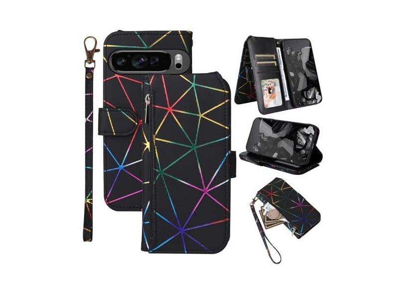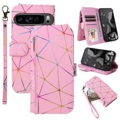 Furiet Capa carteira para Google Pixel 9 Pro XL com alça de pulso destacável, 9+ compartimentos para cartões, bolsa dobrável de couro PU de luxo, capa flip com zíper e suporte para cartão para Pixel9