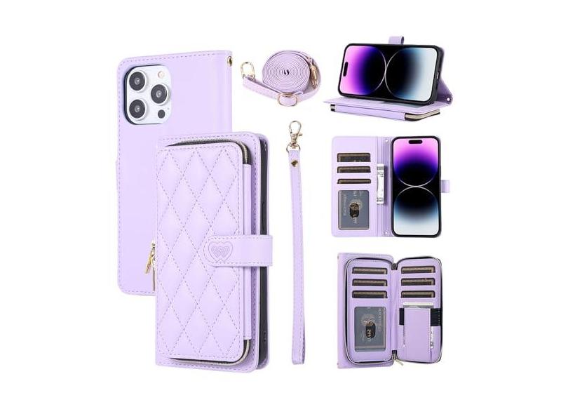 Furiet Capa carteira para iPhone 14 Pro de 6,1 polegadas com alça de pulso, alça de ombro, 9+ compartimentos para cartões, bolsa com zíper, capa de telefone de couro PU de luxo para iPhone14Pro 5G i