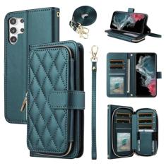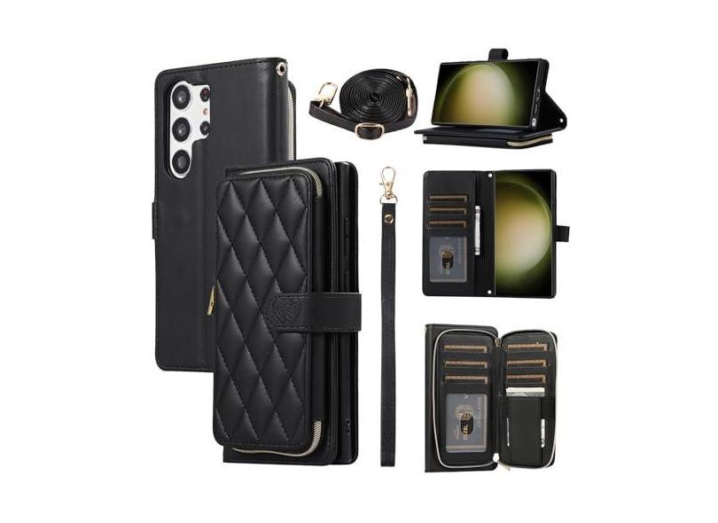 Furiet Capa carteira para Samsung Galaxy S24 Ultra 5G com alça de pulso, alça de ombro transversal, mais de 9 compartimentos para cartões, bolsa com zíper, capa de celular de couro PU de luxo para