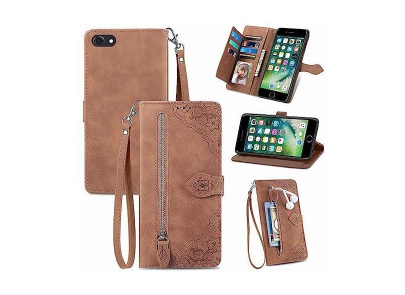 Furiet Compatível com iPhone 6/6s/7/8/SE 2020 2022 capa carteira alça de pulso couro flip suporte para cartão capa de telefone para i Six Seven 6a i6 i7 i8 7s 8s SE2020 SE2 2 SE2022 SE3 3 feminino