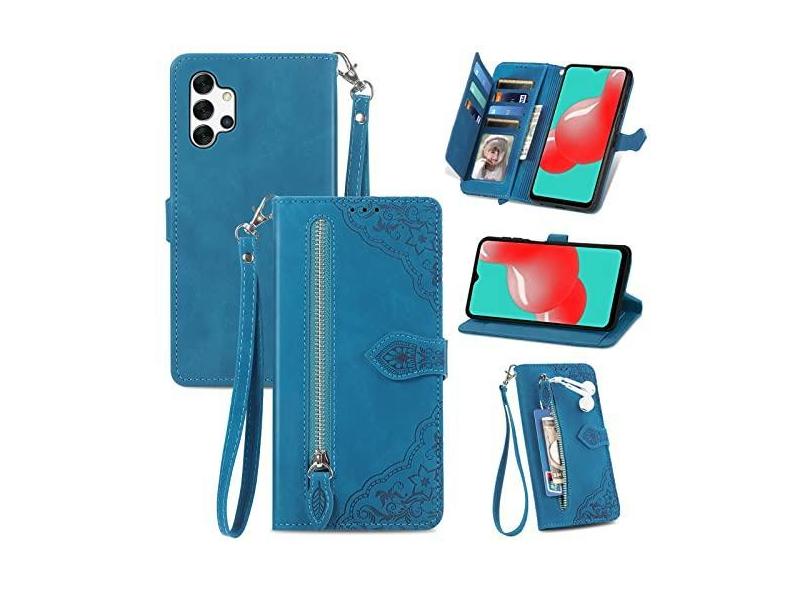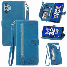 Furiet Compatível com Samsung Galaxy A32 5G 2021 16.5 cm capa carteira e alça de pulso couro flip suporte suporte acessórios celulares capa de telefone para M32 G5 A 32 32A S32 SM-A326U A326U azul