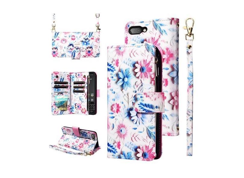 Furill Capa carteira para BlackBerry KEY2 com alça de pulso destacável, alça de ombro transversal, bolsa de couro com zíper, porta-cartão de crédito, protetor de suporte, capa de telefone com chave 2