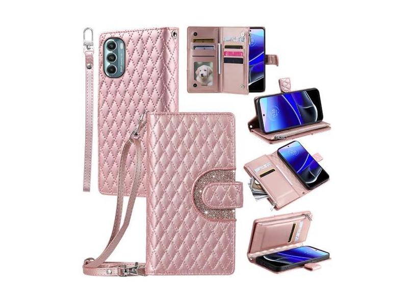 Furill Capa de telefone para Motorola Moto G Stylus 5G 2022 capa carteira com alça de pulso transversal alça de ombro 9+ compartimentos para cartão bolsa com zíper suporte de couro XT2215-1 XT2215-4
