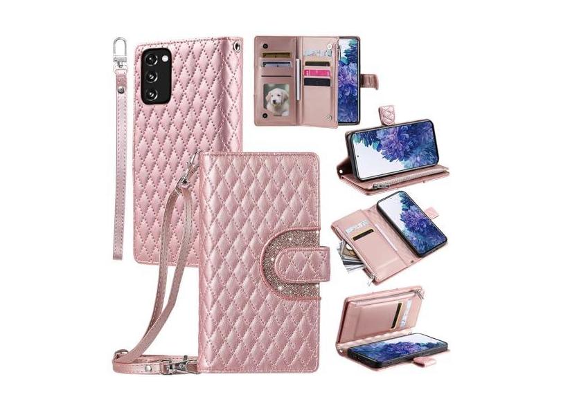 Furill Capa de telefone para Samsung Galaxy S20 FE 5G 6,5 polegadas capa carteira com alça de pulso transversal alça de ombro bolsa de couro suporte S 20 EF UW S20FE5G S20FE 20S S2O Fan Edition 4G G5