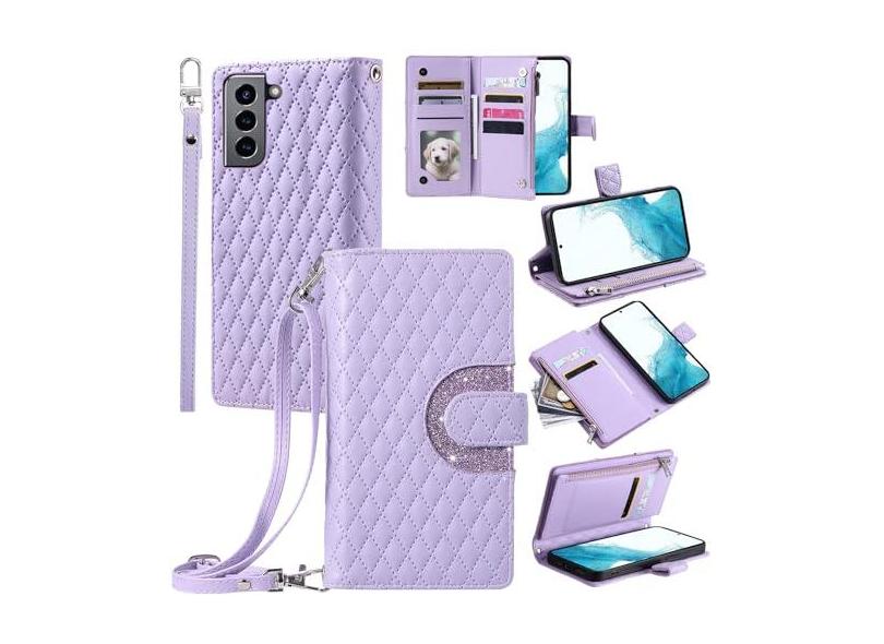 Furill Capa de telefone para Samsung Galaxy S22 5G capa carteira com alça de pulso transversal alça de ombro 9+ compartimentos para cartão bolsa com zíper bolsa de couro PU de luxo suporte S 22 22S 4G