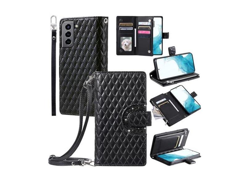 Furill Capa de telefone para Samsung Galaxy S22 Plus S22+ 5G capa carteira com alça de pulso transversal alça de ombro 9+ compartimentos para cartões bolsa com zíper suporte de couro S22+5G S22plus