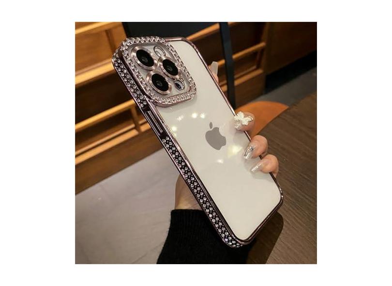 Galvanizado claro glitter diamante strass caso de telefone para iphone 14 11 12 13 15 pro max silicone transparente capa, rosa, para iphone 11