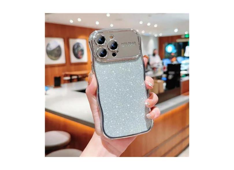 Galvanoplastia Wave Silicone para IPhone 15 14 Plus 13 12 11 Pro Max Glitter Powder Capa macia à prova de choque para prevenção de quedas, prateada, para iPhone 11 Pro
