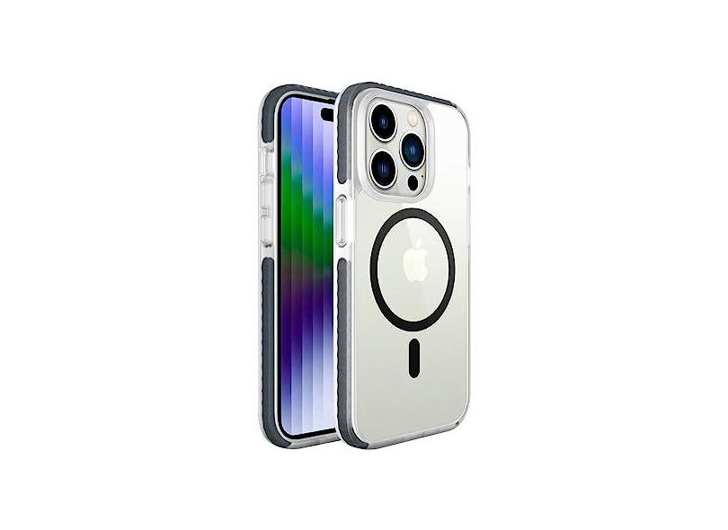Geonav Capa protetora Impact Pro iPhone 14 Pro, TPU flexível nas extremidades, Compatível com o sistema de imãs MagSafe®, IPI14PSG, Transparente/Cinza Escuro