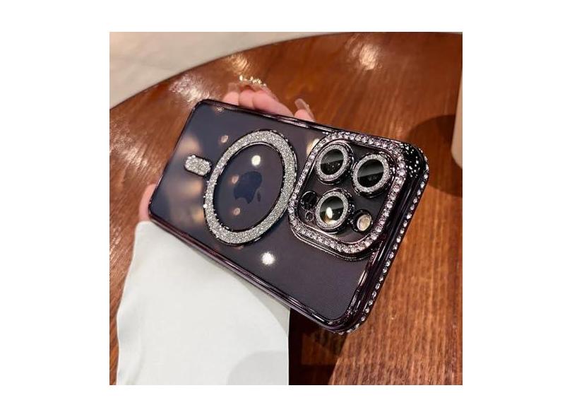 Glitter diamante claro caso de telefone para iphone 15 14 13 12 11 pro max 15 plus magnético para capa de carga sem fio, roxo escuro, para iphone 11