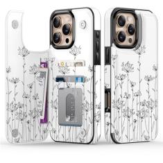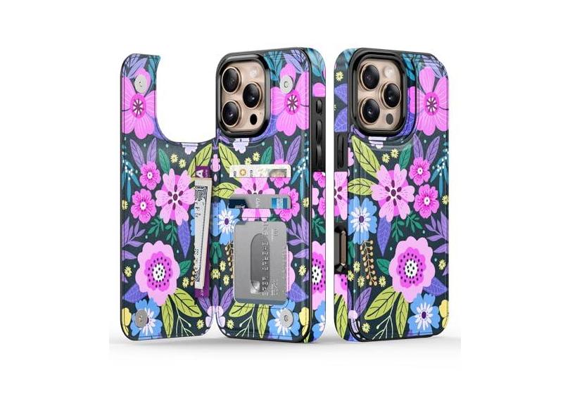 Goodon Capa carteira para iPhone 16 Pro - Capa flip de couro com design floral moderno, 3 compartimentos para cartão e função de suporte, capa protetora elegante para mulheres e meninas - Flores