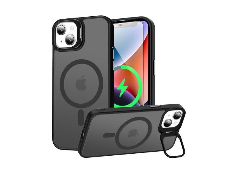 Goodon Capa magnética para iPhone 14, capa para iPhone 13 com protetor de tela - compatível com carregamento sem fio - suporte de metal embutido, capa protetora fosca para celular de 6,1 polegadas