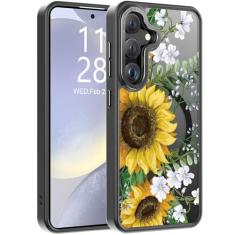 Goodon Capa para Galaxy S24+ Plus com protetor de tela, compatível com carregamento sem fio, capa fosca translúcida à prova de choque - linda capa de telefone com design floral para mulheres -