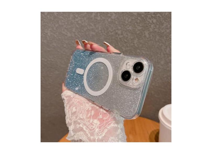Gradiente Glitter Capas Magnéticas Capa de carga sem fio para iPhone 14 13 12 11 Pro Max XR X XS Max 7 8 Plus Capa transparente, azul, para iPhone 8 Plus