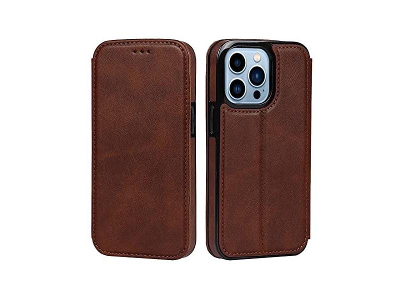 GSYH Capa carteira para iPhone 13/13 Pro/13 Pro Max, Capa flip protetora magnética de couro PU com slot para cartão de crédito Suporte de visualização à prova de choque, TPU, marrom, 13pro max 17 cm