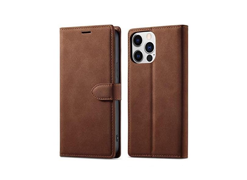 GSYH Capa carteira para iPhone 13 Mini/13/13 Pro/13 Pro Max, capa de couro legítimo fólio compartimentos para cartão fecho magnético TPU à prova de choque Kickstand Flip Capa, Marrom, 13 15,5 cm