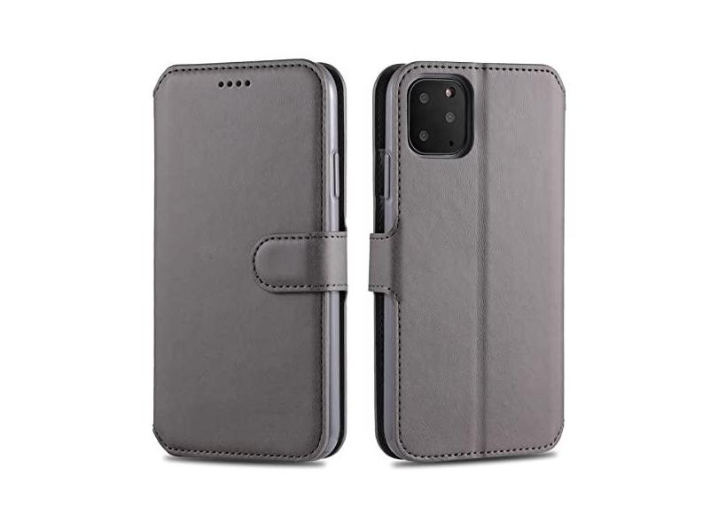 GSYH Capa carteira para iPhone 13 Mini/13/13 Pro/13 Pro Max, Capa flip protetora magnética de couro PU com slot para cartão de crédito Suporte de visualização à prova de choque, TPU, cinza, 13 Mini 5,4 polegadas