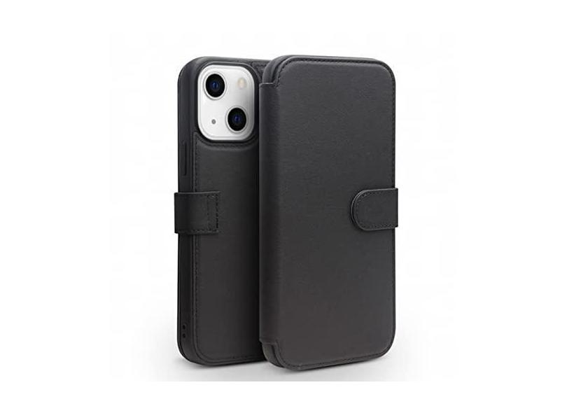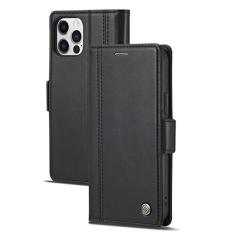 GSYH Capa carteira para iPhone 13 Mini/13/13 Pro/13 Pro Max, capa protetora de couro legítimo flip slots de cartão TPU Shell Kickstand magnético Folio Capa, Preto, 13 Mini 5,4 polegadas