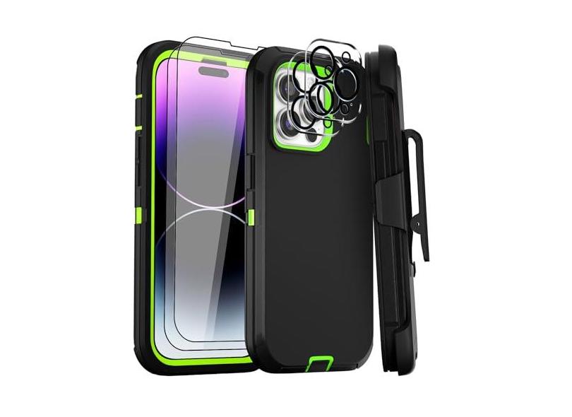 GYJ Capa para iPhone 14 Pro Max 17.0 cm coldre com clipe de cinto com 2 protetores de tela + 2 protetores de lente de câmera, capa de proteção contra quedas de grau militar resistente de corpo inteiro